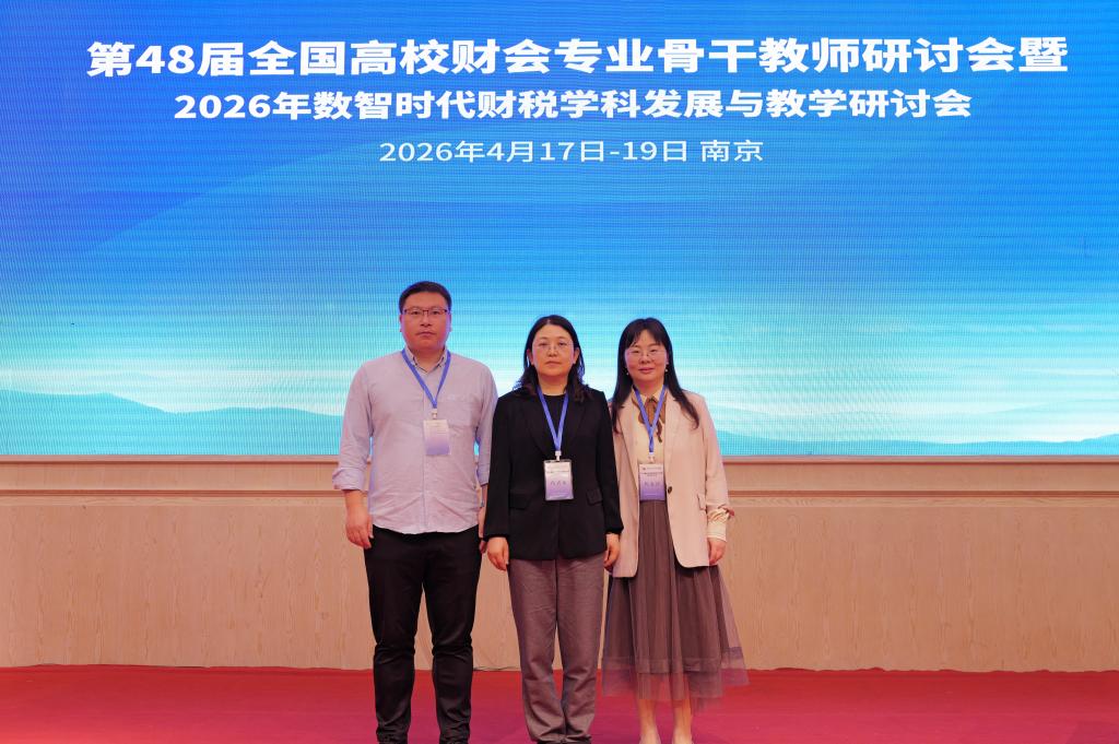 2026年4月18日-19日,中国人民大学出版社主办的第48届全国高校财会专业骨干教师研讨会暨2026年数智时代财税学科发展与教学研讨会在南京顺利举行。来自全国60余所高校的财会、财税等专业骨干教师齐聚一堂,围绕数智时代财税学科发展和教学改革的热点、难点问题,交流经验、探讨思路。财税学院院长、税收学专业负责人刘颖教授一行三人参加了本次研讨会。